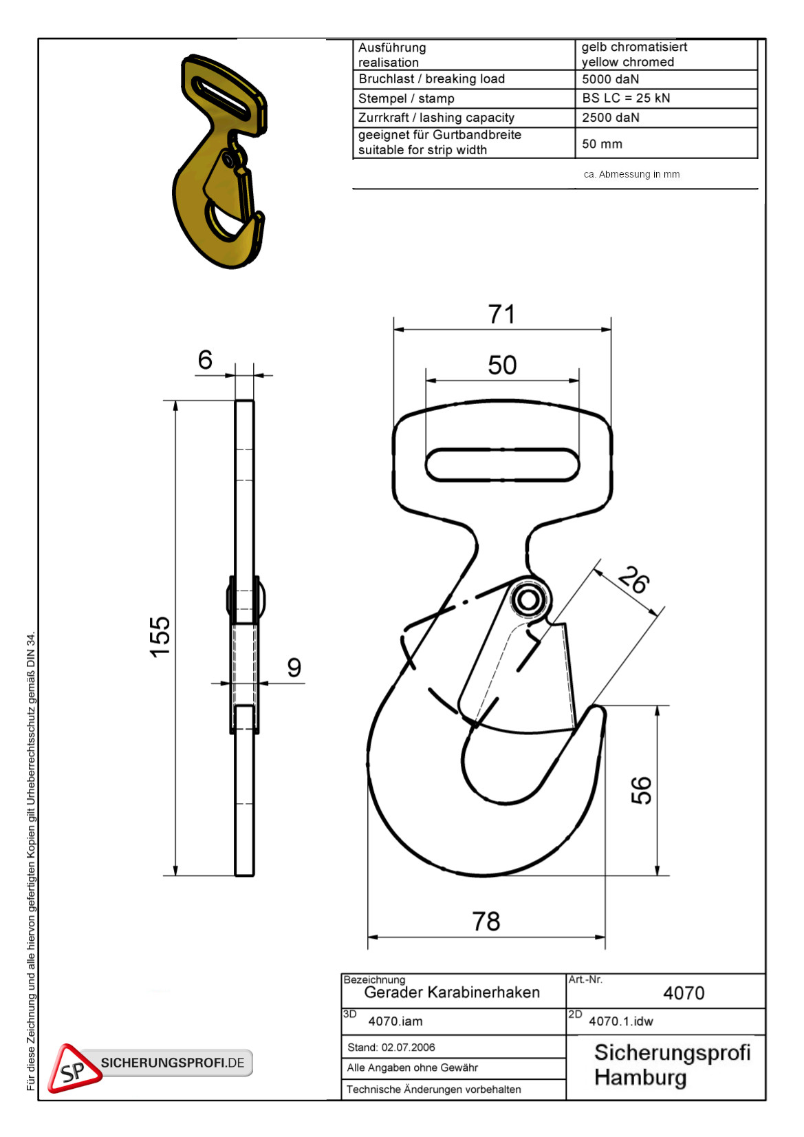 Produktinformationen "Zurrgurt 5.000 daN, 50 mm breit, gerader Karabinerhaken"
