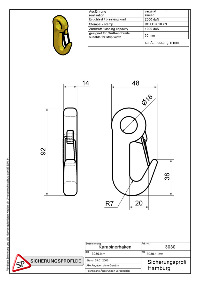 Produktinformationen "Zurrgurt 2.000 daN, Umkehrratsche, Karabinerhaken"