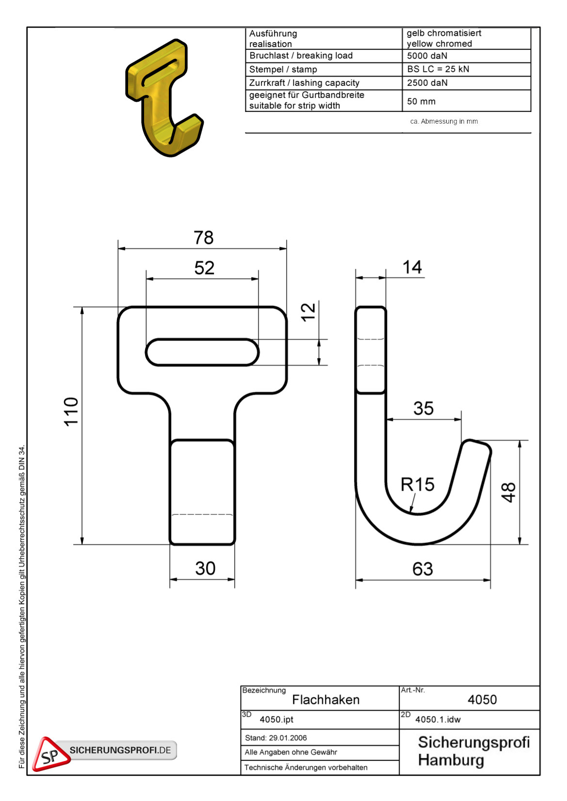 - zulässige Zugkraft im geraden Zug 2.500 daN