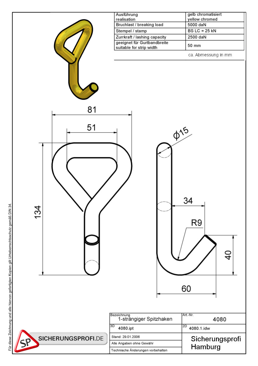 Produktinformationen "Zurrgurt 4.000 daN, Umkehrratsche, 1-strang Spitzhaken"