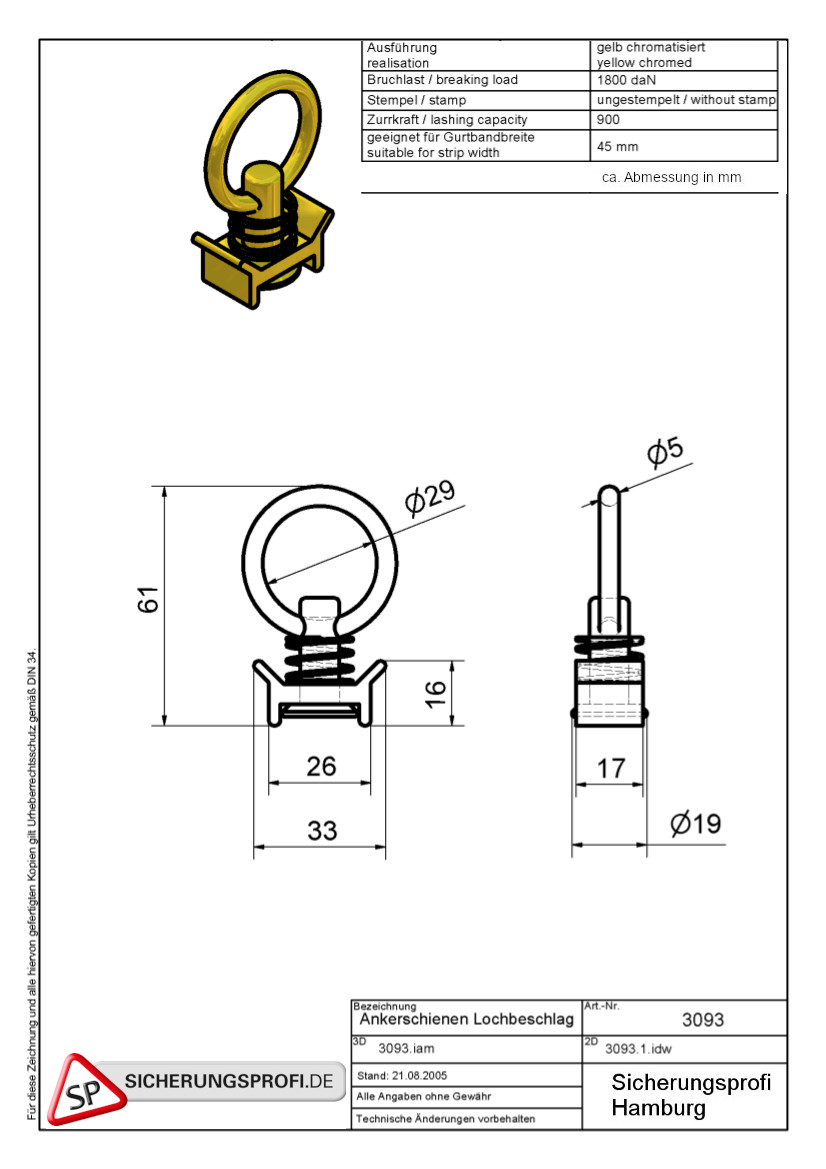 Dieser Zurrgurt ist für die Sicherung leichter Ladung ausgelegt. Die speziellen Beschlagteile können in eine Ankerschiene eingehängt werden, für punktgenaue Ladungssicherung - Bohrung für Bohrung. Einfach zu bedienen und absolut sicher.