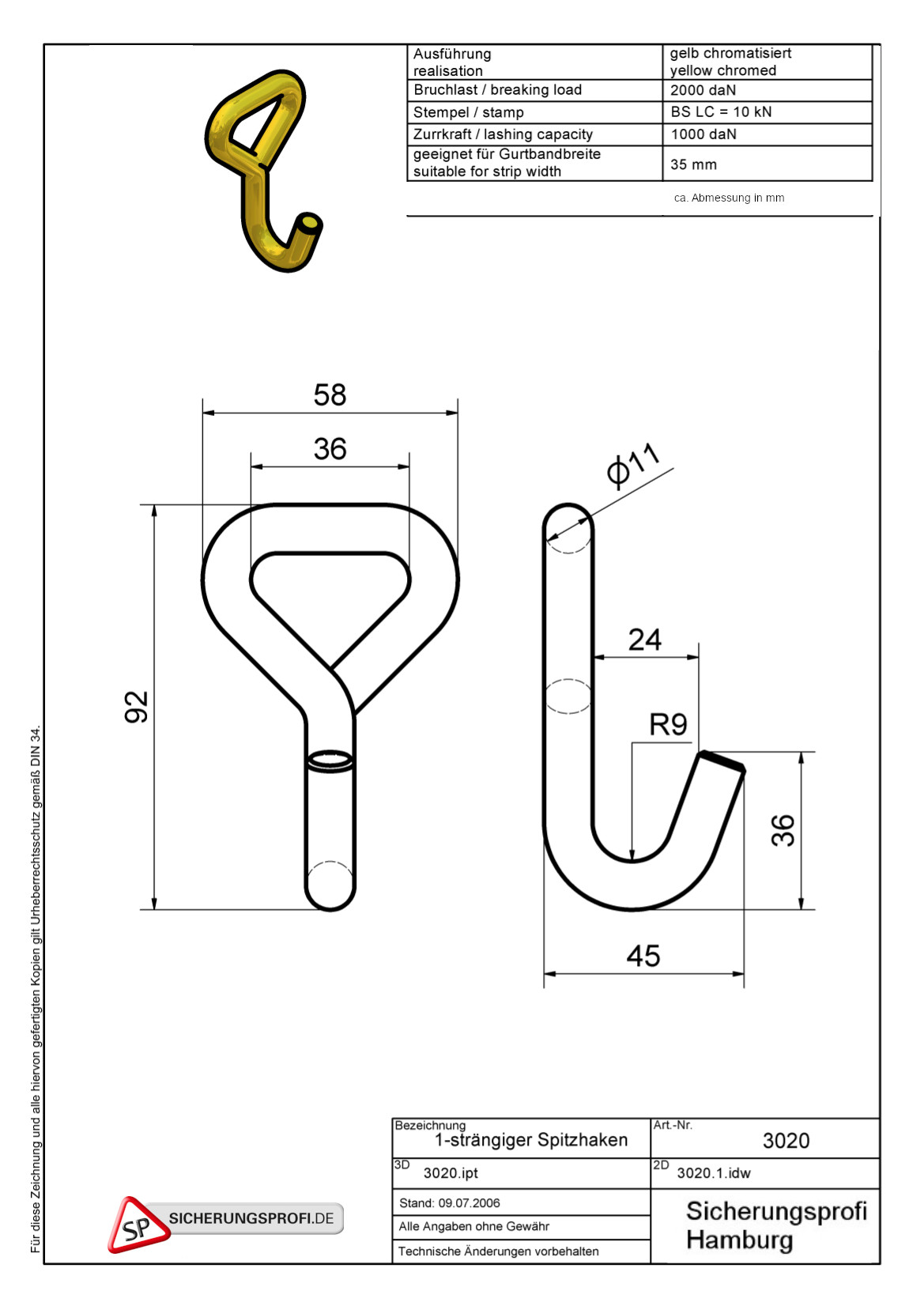 - zulässige Zugkraft im geraden Zug 1.000 daN